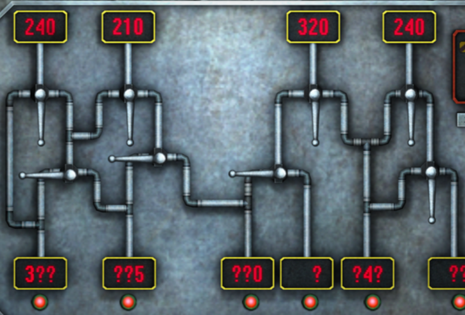 - 이제 장치에 적힌 숫자만큼 전력을 공급하면 되는데 다음과 같이 왼쪽부터 순서대로 "아래쪽, 왼쪽, 아래쪽, 왼쪽, 왼쪽, 아래쪽, 아래쪽" 순서로 레버를 변경하고 전력을 공급하면 된다.