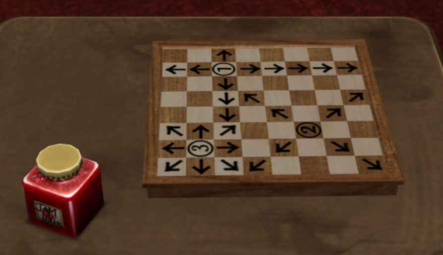 - 이제 체스판에서 1, 2, 3에 해당하는 말이 무엇인지를 찾아내도록 하자. 체스를 모른다면 좀 전에 획득한 "체스 룰북"을 참고하면 된다.
