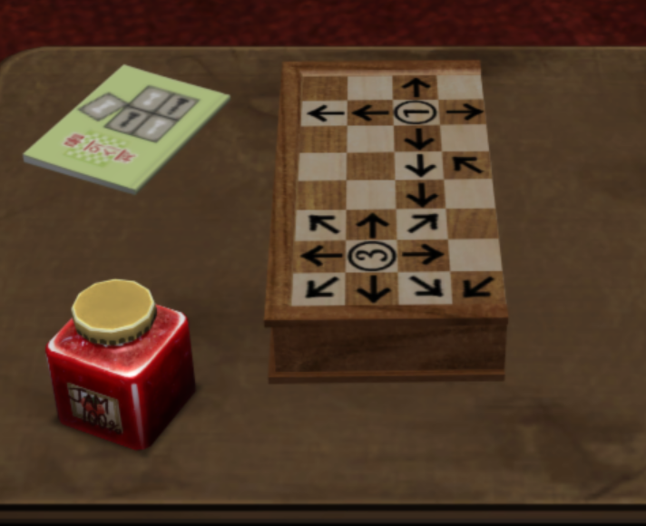 - 우선 체스판 옆의 책을 조사하여 "체스 룰북"을 획득한다.