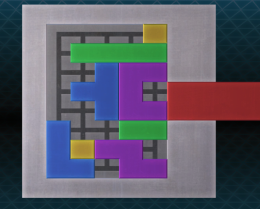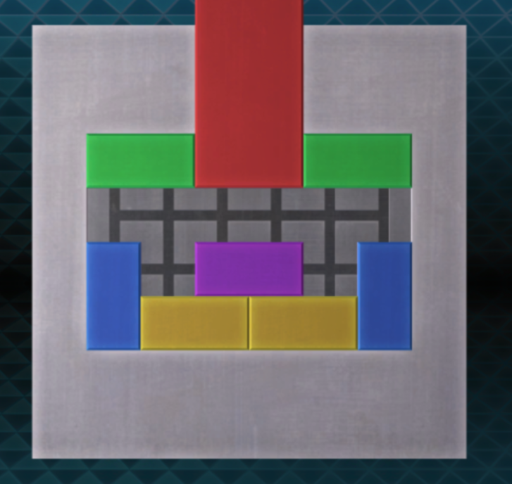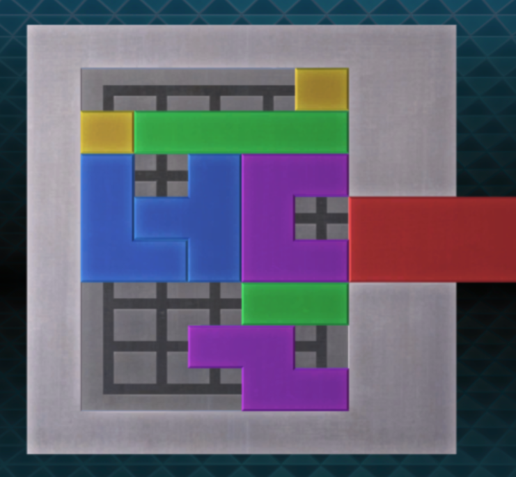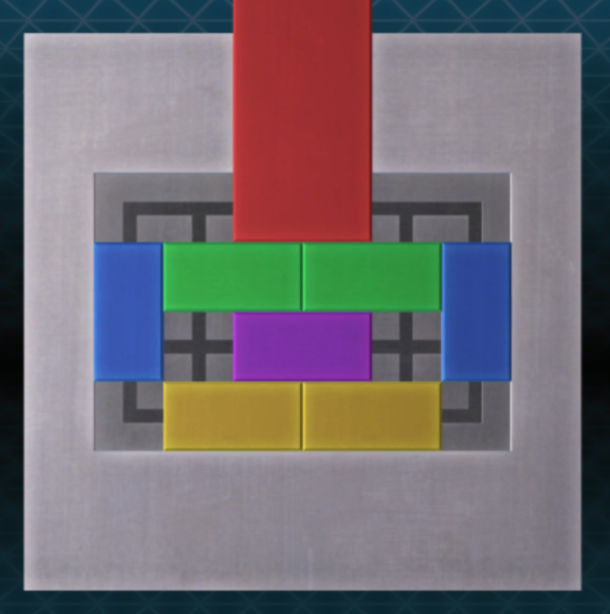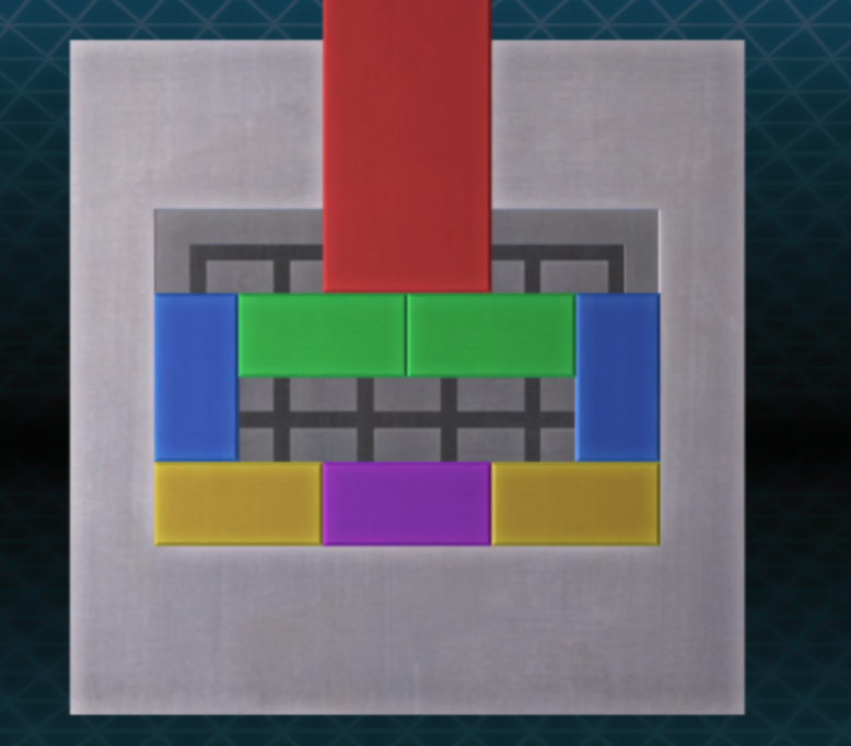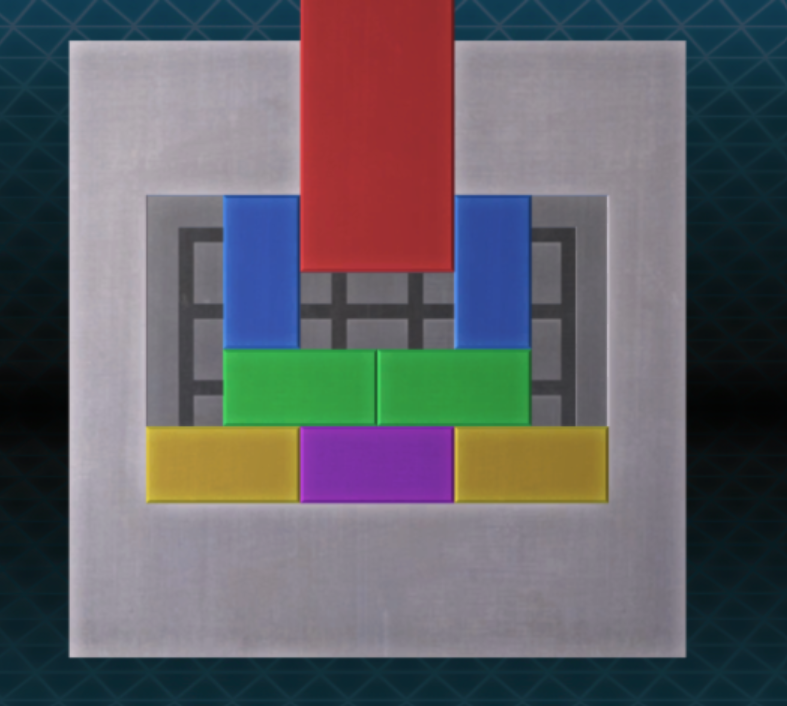 - 가운데 있던 노란색 블록을 오른쪽 아래로 보내고, 빨간색 블록을 내리면 퍼즐을 해결할 수 있다.