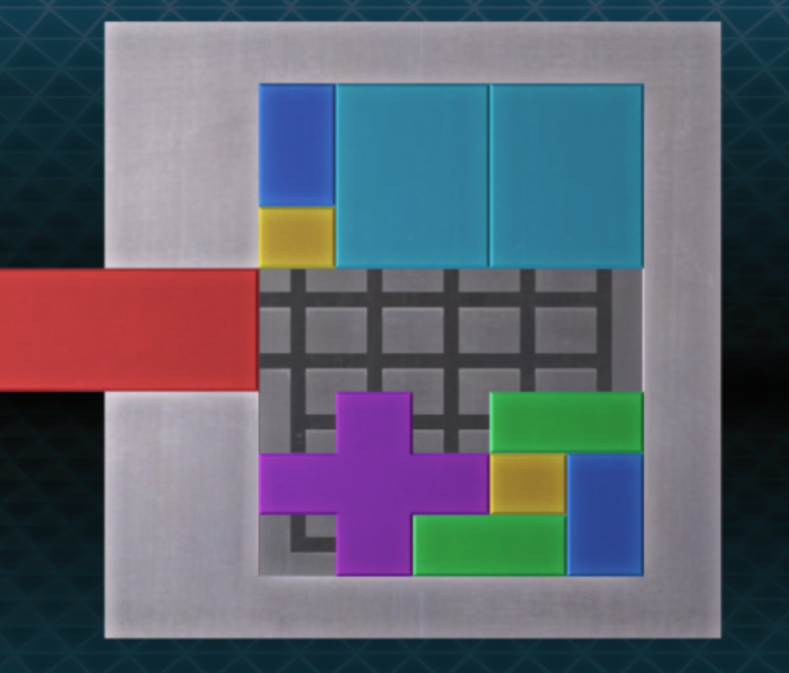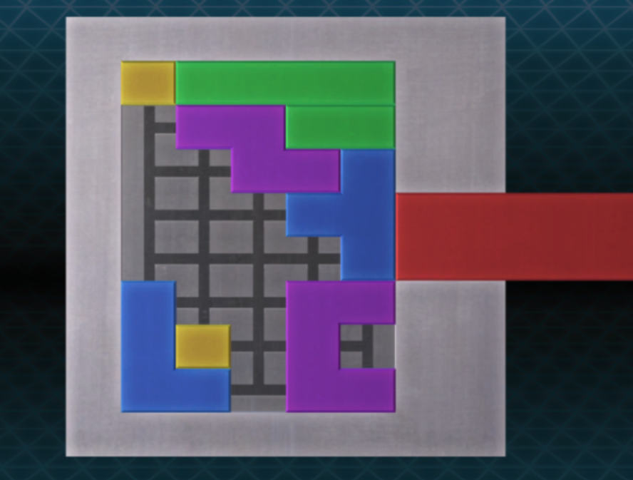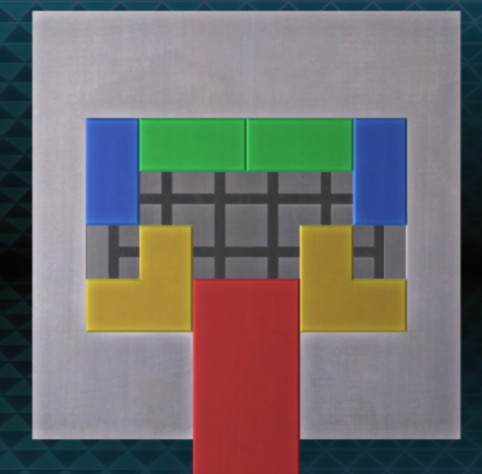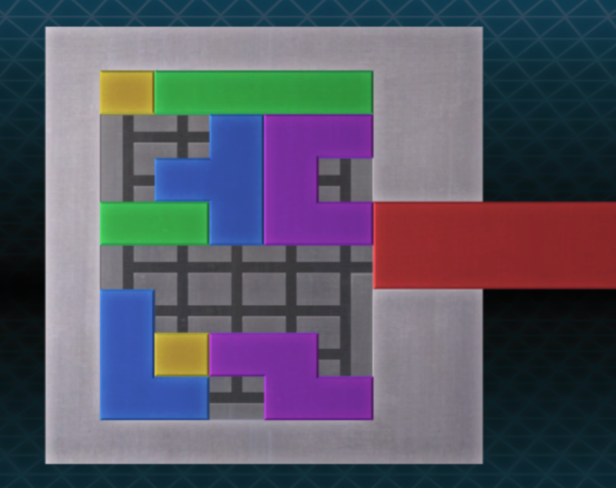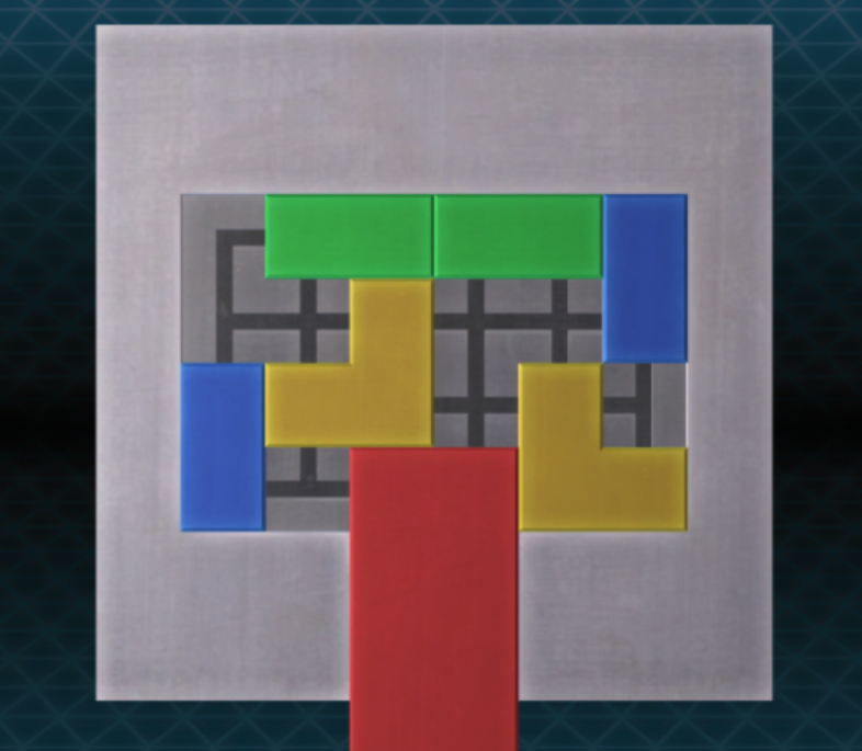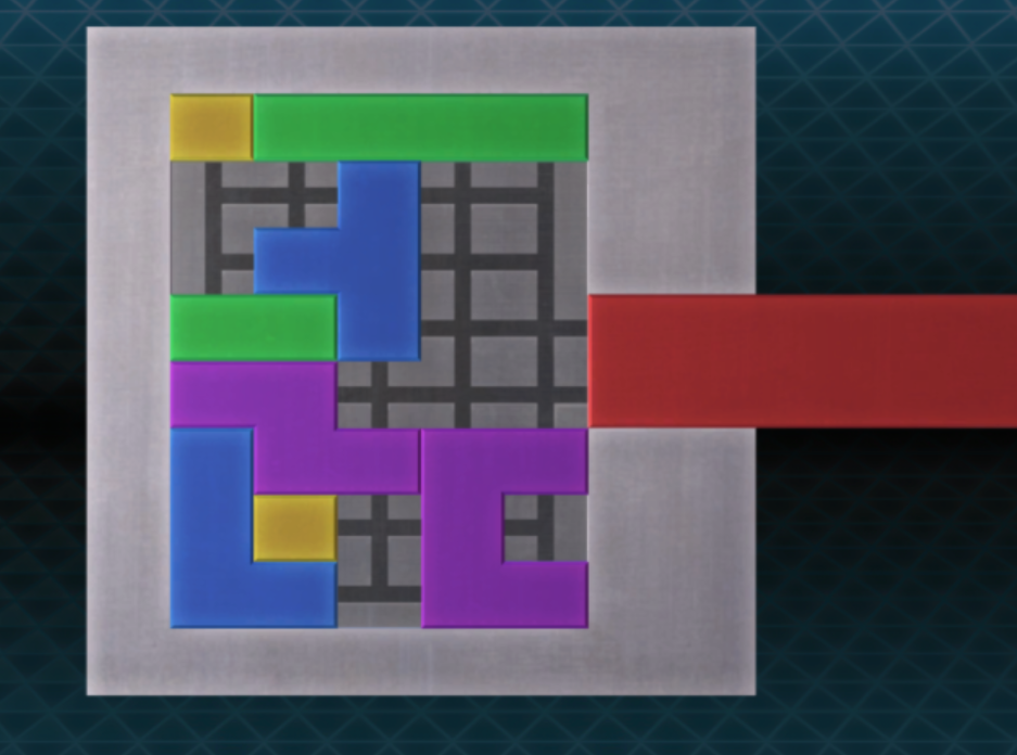 - 파란색 블록을 위로 올리고 초록색 블록을 왼쪽으로 보내자. 그 뒤 빨간색 블록을 아래로 보내면 퍼즐을 해결할 수 있다.