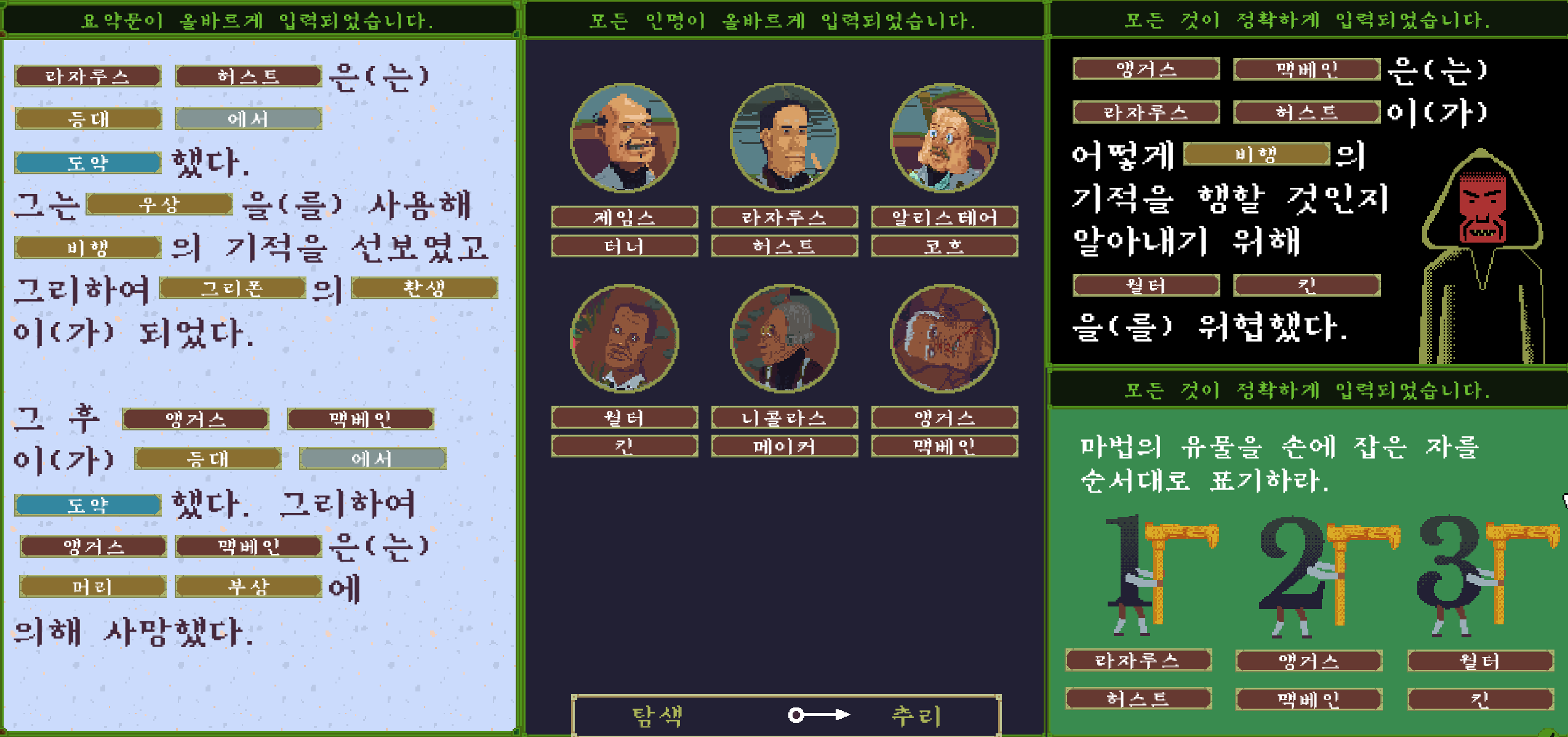 • 본 게임은 열두가지 사건의 진상을 직접 파악하는데에서 오는 재미가 주이므로, 공략은 막히는 부분만 참고하시길 권장드립니다.