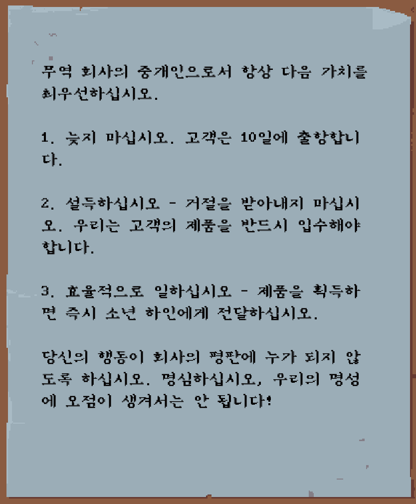 여관 주인이 가지고 있는 쪽지를 클릭해보면