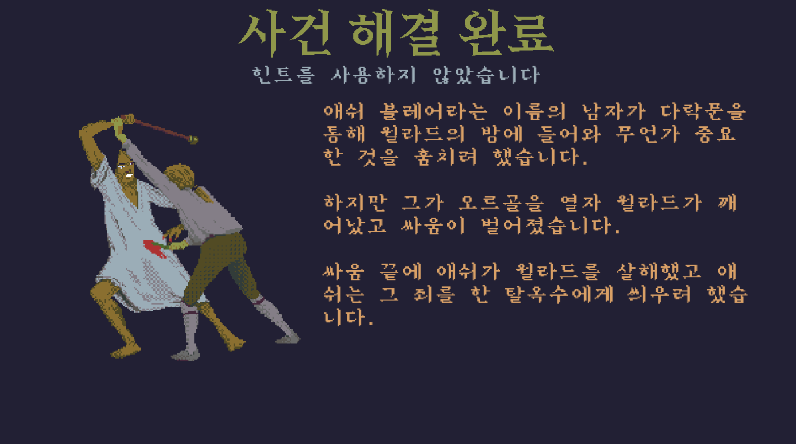 이제 알아낸 사실을 기반으로 추리를 완성하면 끝이다.
