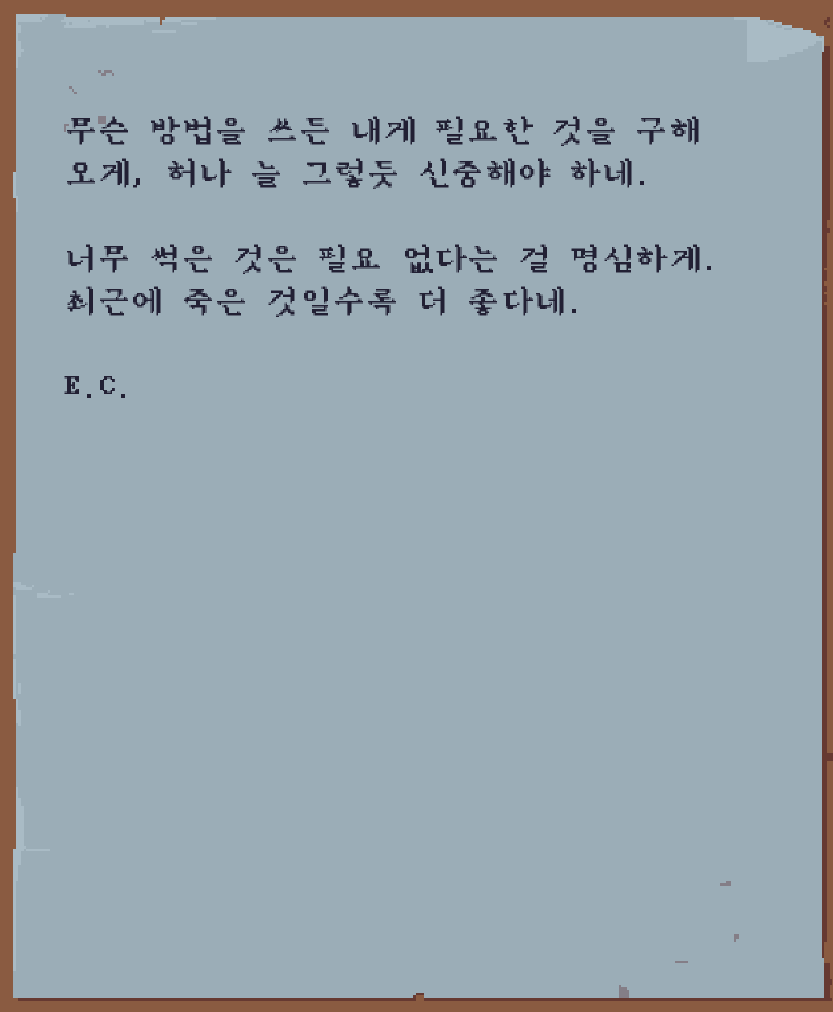 일단 부엌 벽에 있는 쪽지를 읽어보자.