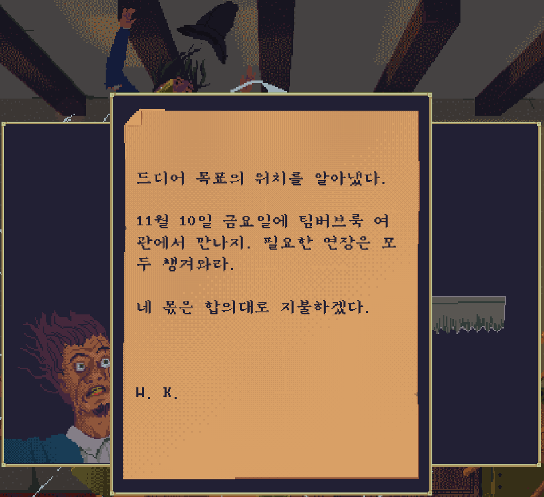 천장으로 날라가는 용병을 수색하면 윌터 킨에게 쪽지를 받았고, 팀버브룩 여관에서 만나자고 하는 것을 볼 수 있을 뿐만 아니라,