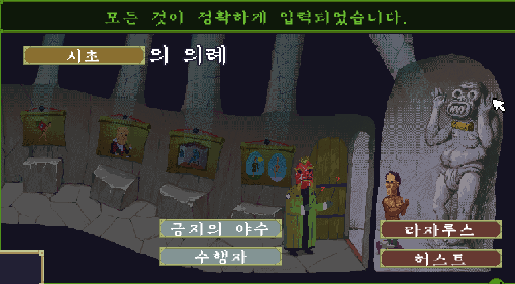 이제 석상의 목에 걸린 두루마리를 클릭해서 어떤 의식인지를 파악해 보도록 하자.