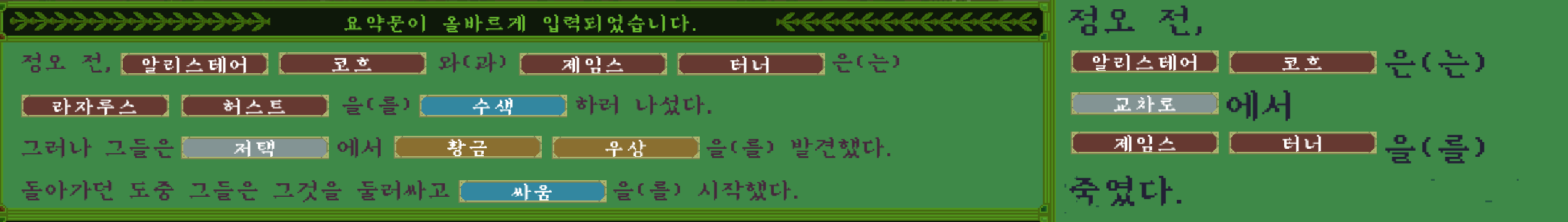 이를 토대로 첫번째 요약문도 쉽게 맞출 수 있다.