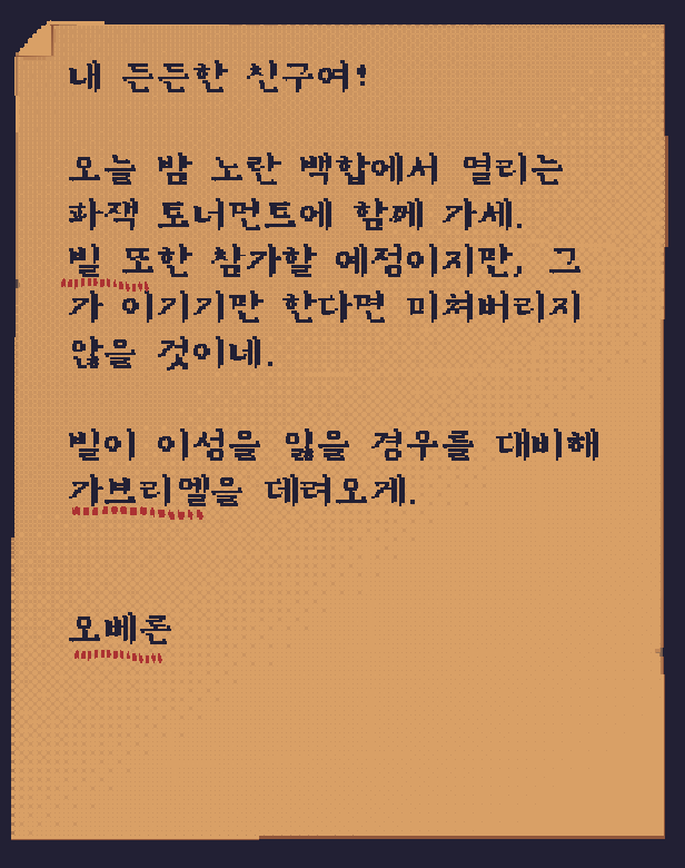 이 쪽지를 보면 오베론, 가브리엘, 판둘라가 한편이며
