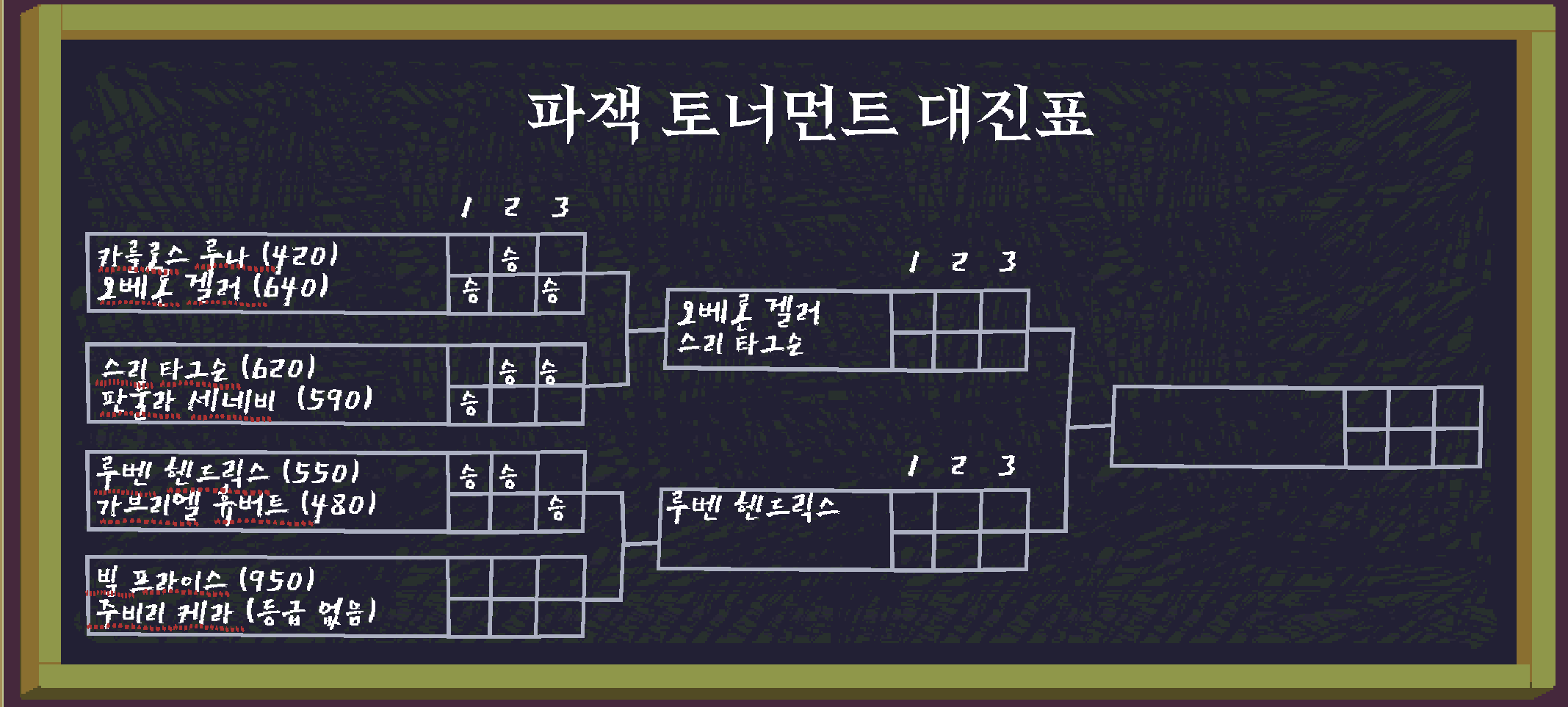 벽에 있는 대진표를 보자.