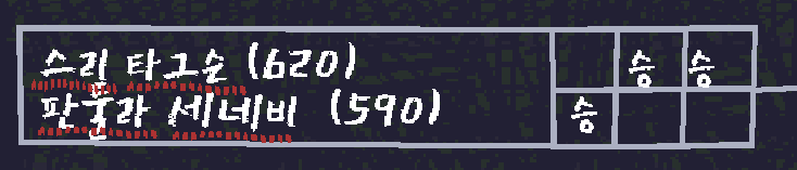 노란색 진영이 3게임 다 이겼는데 이러한 결과는 대진표 상에 존재하지 않는다.