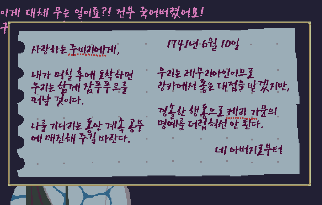 가지고 있는 쪽지를 통해 이 사람의 이름이 주비리 케라인 것을 알 수 있고,