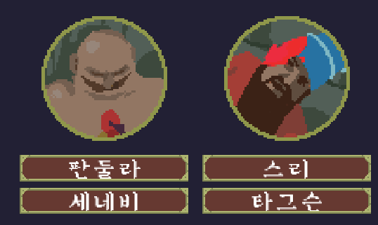 이 게임의 파란색 진영은 스리 타그슨이고 노란색 진영은 판둘라 세네비다.
