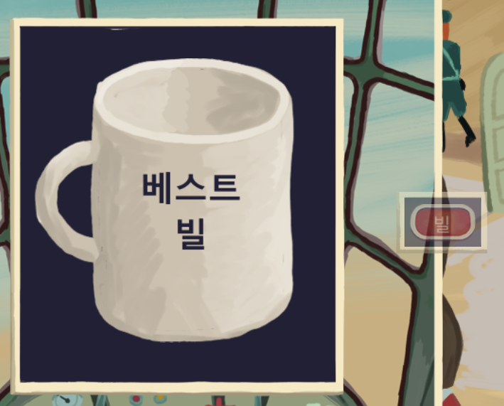 컵을 클릭했을 때 인명 단서(붉은 색)가 빌 밖에 안 뜨므로 베스트는 이름이 아니라는 것을 알 수 있긴 한데...