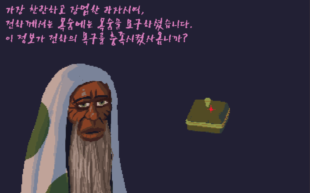 제단으로 가니 한 사람은 죽어 있고, 한 사람은 기도를 하고 있다.