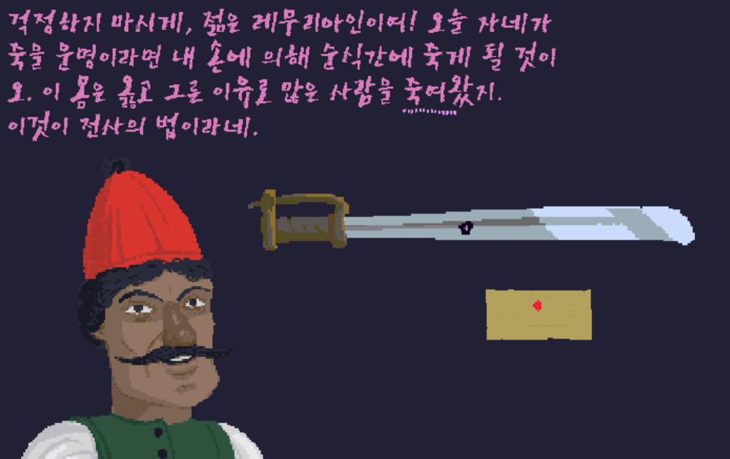 행동과 커다란 검을 가지고 있는 것을 보니 이 사람이 검술대장일 가능성이 높다.