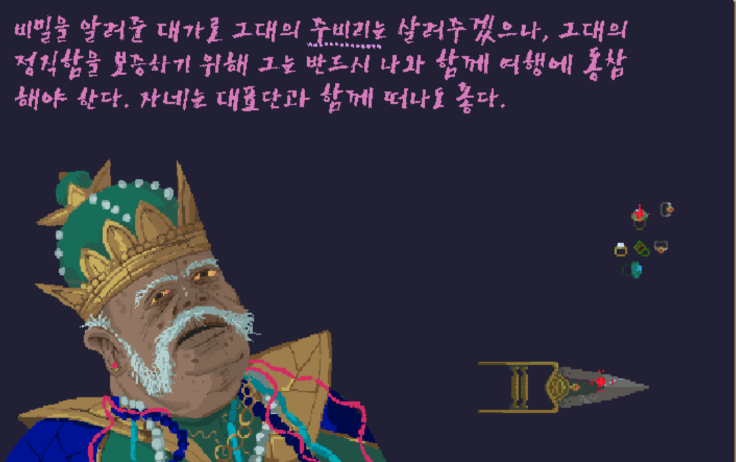 뭔가 비밀을 알려준 댓가로 주비리를 살려준다고 한다. 대신 주비리는 본인과 동행해야 한다고 한다.