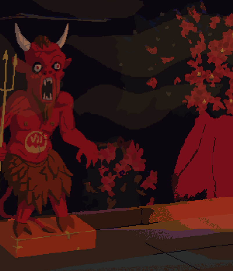 언급한 악마 동상 옆의 덤불을 살펴 보면