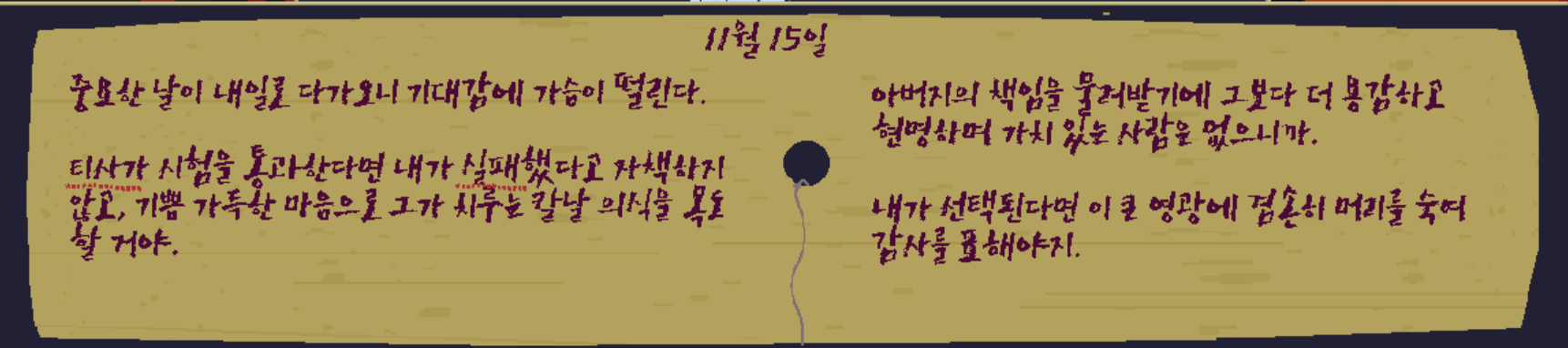 일기와는 다르게 후계자가 되기 위한 욕심을 드러내고 있다.