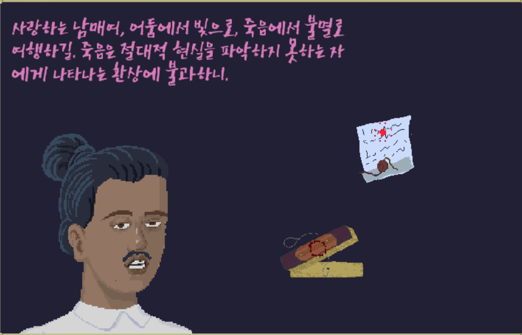 그리고 살아 있는 남자를 보면, 이 둘이 남매임을 알 수 있고