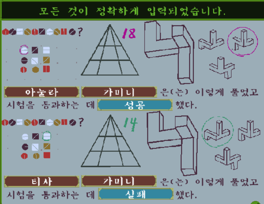따라서 흰색 동그라미에 가로 직선이 그어져 있는 것이 정답으로 이 시험자는 정답을 맞췄다.