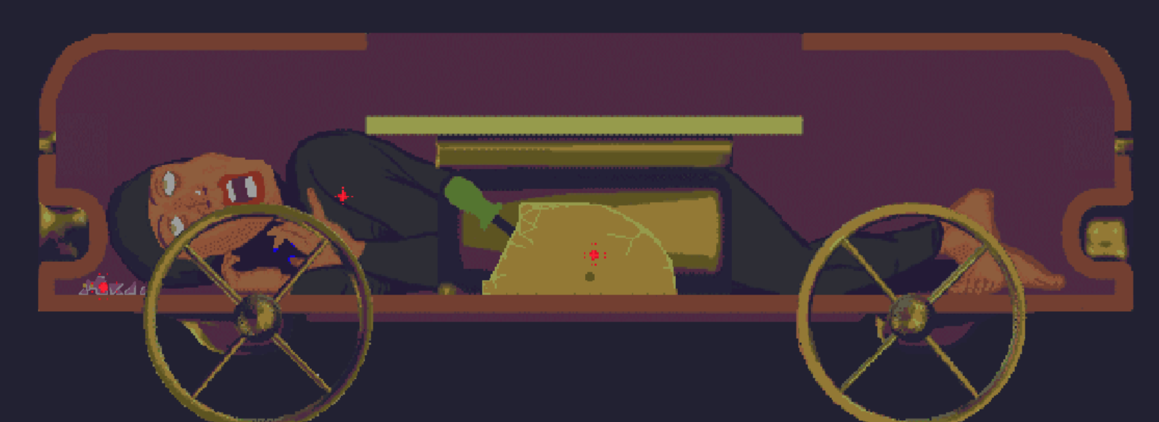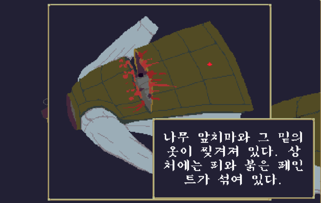 피에 붉은 페인트가 섞여 있다는 것이 눈여겨 볼 부분이다.