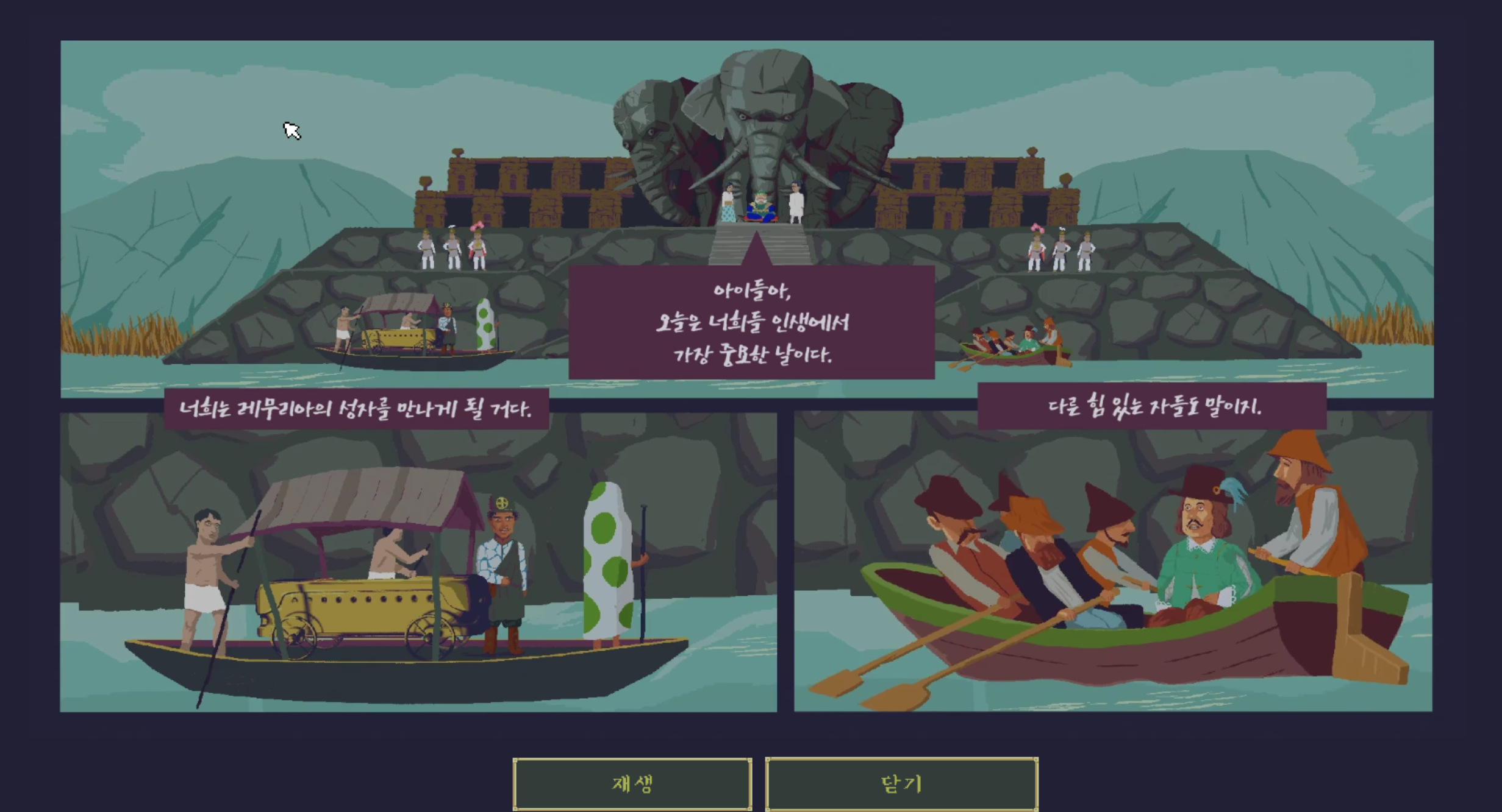 시작하면 한 왕 또는 부족장처럼 보이는 사람이 아이들에게 오늘이 중요한 날이라고 하고