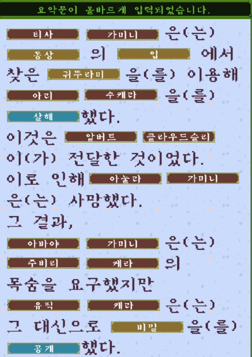 만약 기억이 안 나도 여기 두번째 사건에 등장한 단서만으로도 풀 수 있다.