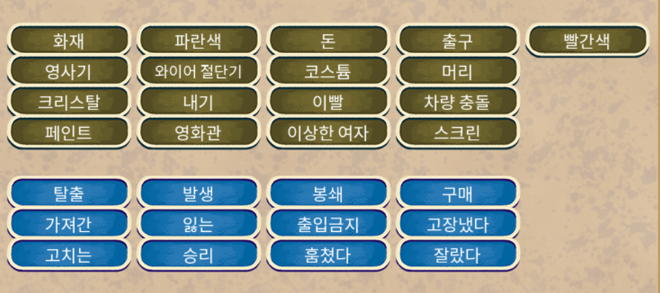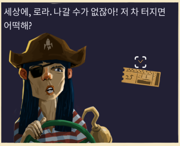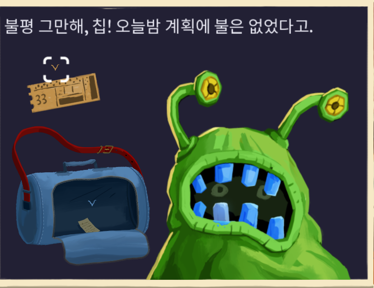 이제 코스튬 캐릭터 추리가 가능한데, 녹색 괴물 캐릭터 빼고 나머지 세 캐릭터의 이름을 알아 냈으므로