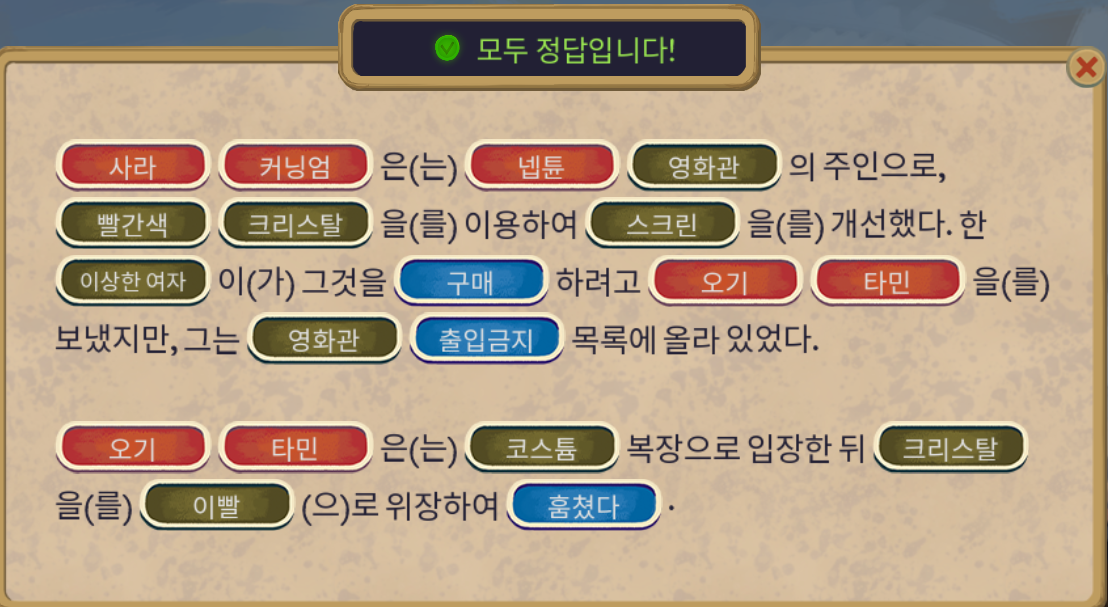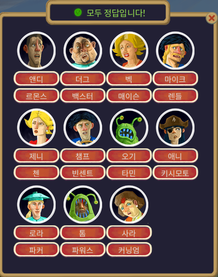 이렇게 코스튬 캐릭터에 대한 추리도 완성하였다.