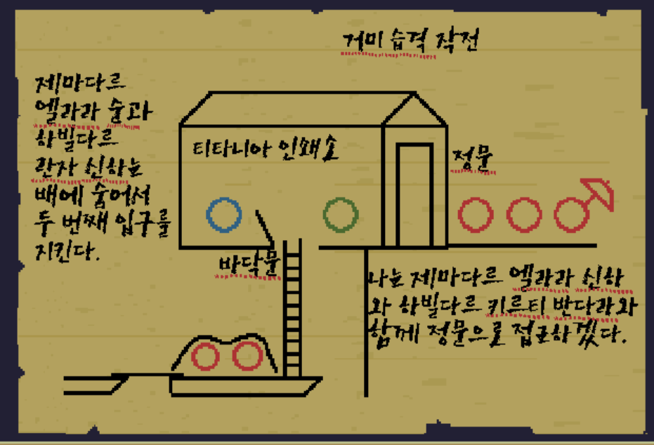 아까 편지를 보낸 인물과 거미가 만나고 있을 때 정문과 바닥을 봉쇄하는 작전이다.
