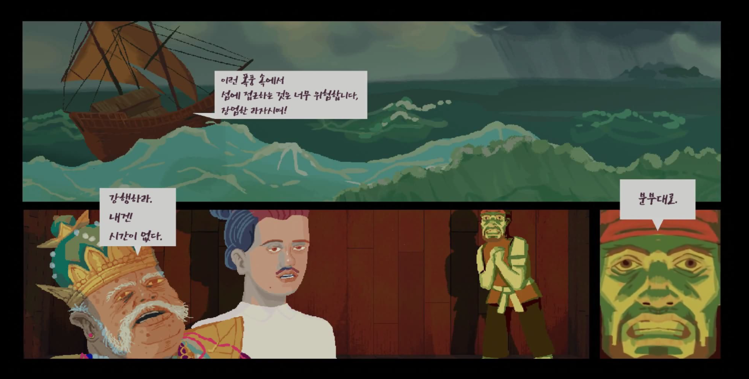 그 결과 배는 난파당했고, 겨우 살아남은 세사람은 섬에 사는 듯한 주민들에게 발각된다.
