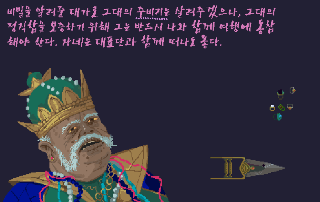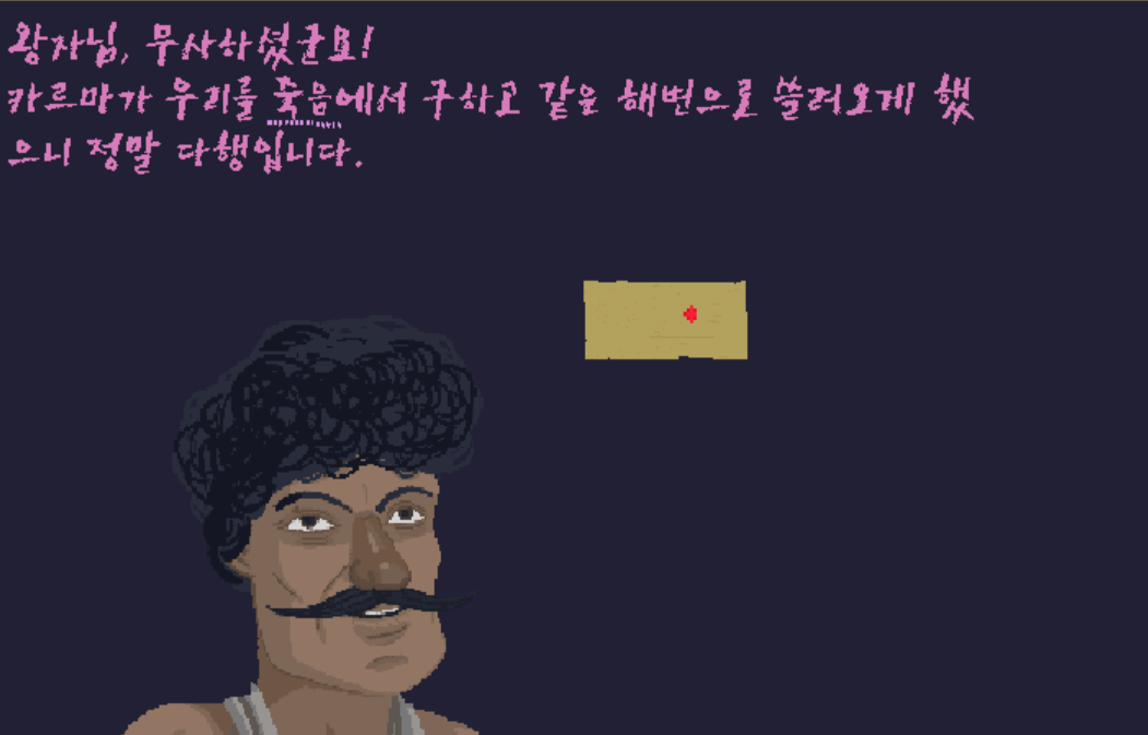 섬에 온지 14일째 되는 날이라고 하는 것을 보니 아까 월드맵에서 봤던 점, 줄, 세모는 시간의 흐름을 나타낸 것 같다.