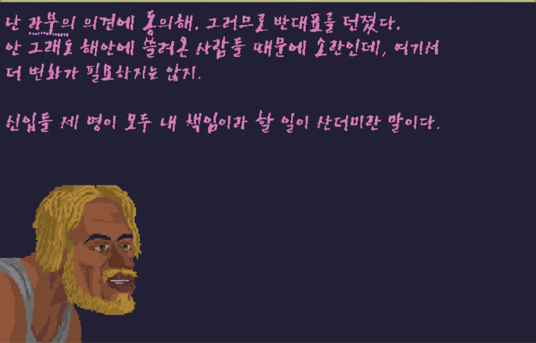 일단 이 남자는 라부의 의견에 동의해 반대표를 던졌다고 한다. 변화가 필요 없다고 하고 있다.