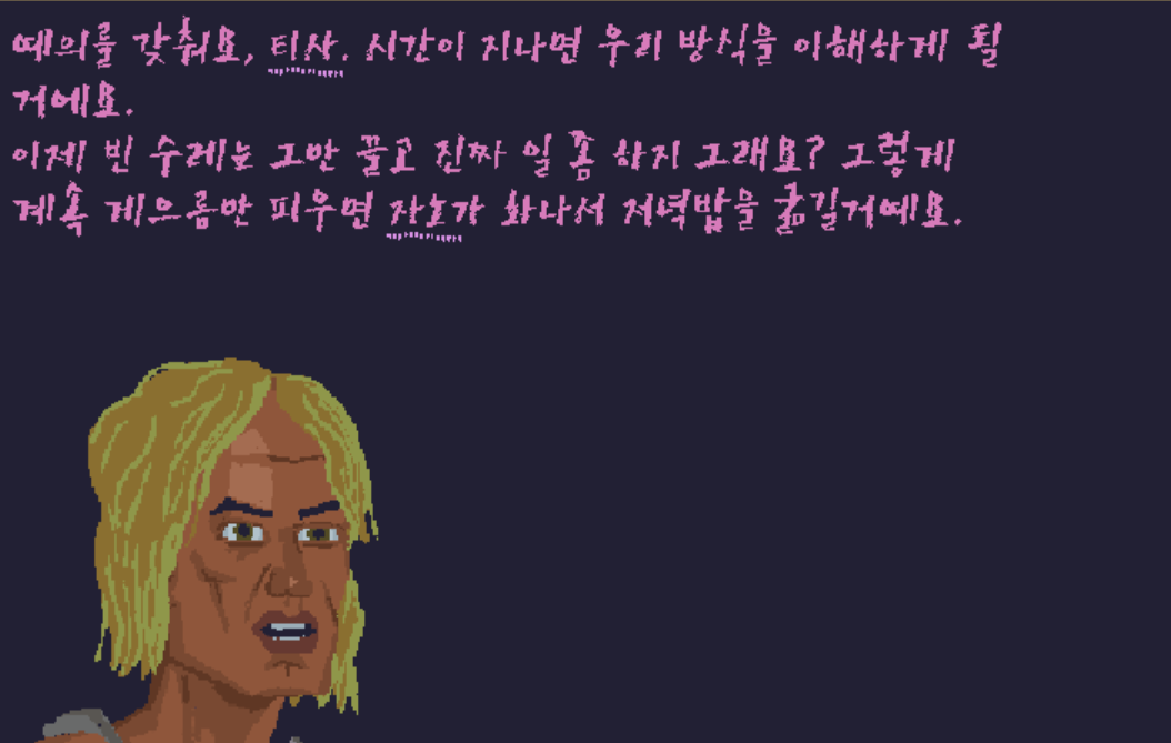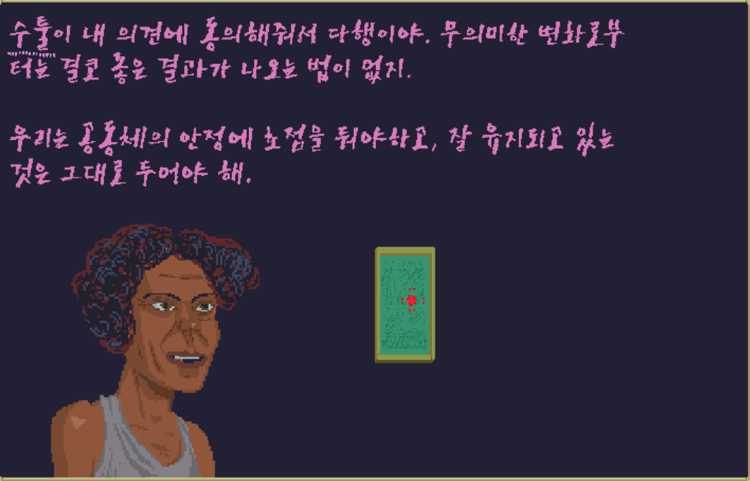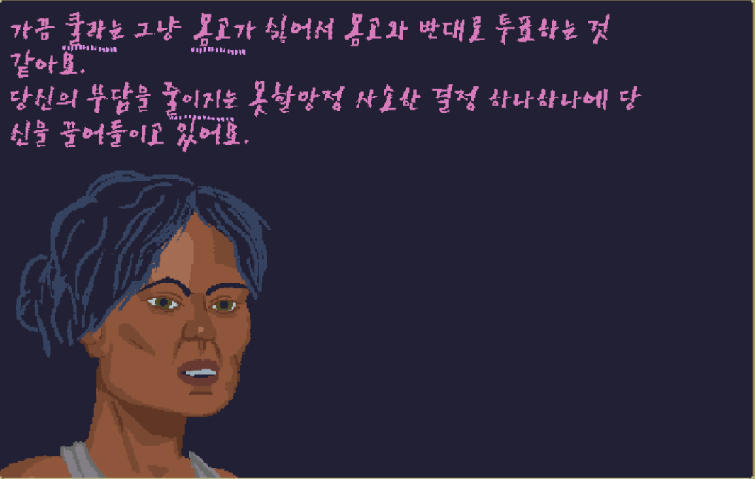 이제 왼쪽 두번째 여자를 보니 수툴이 의견에 동의해줘서 다행이라고 변화를 반대한다고 한다.