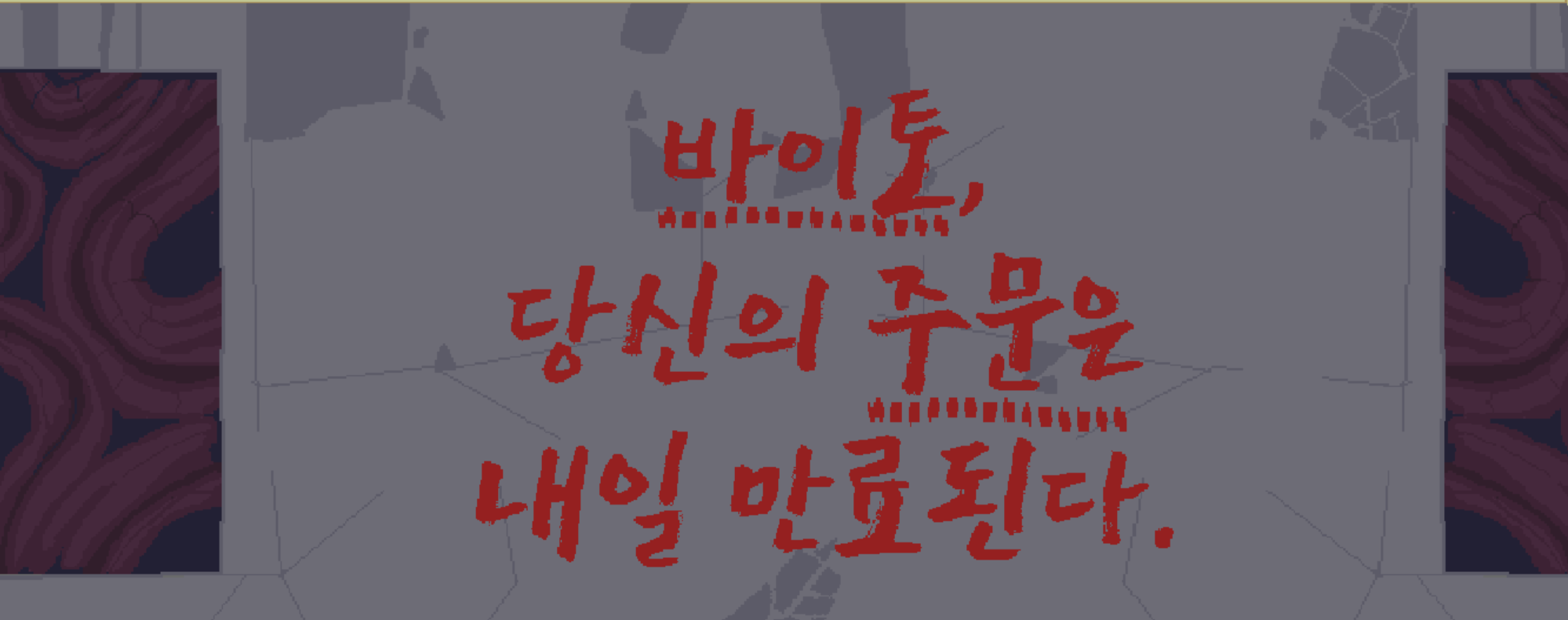 벽에는 바이토, 당신의 주문은 내일 만료된다는 정체 불명의 낙서가 쓰여 있다.