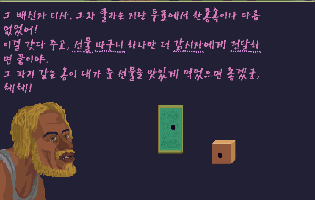 이걸 갖다 주고, 선물 바구니 하나만 더 감시자에게 전달하면 끝이라고 한다.