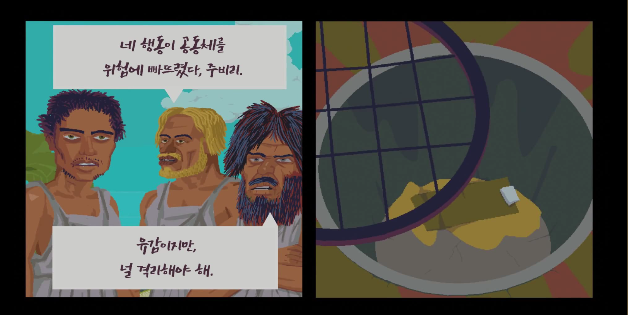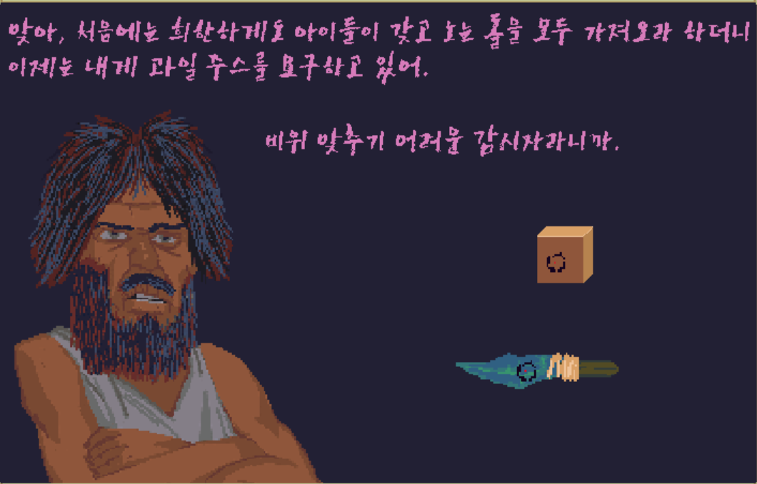 쿨라의 나무 큐브를 잘라서 티사에게 준 것을 알 수 있다.