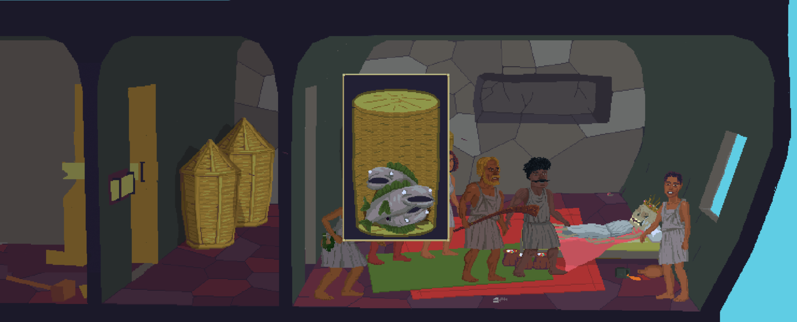 자얀과 주비리가 문을 부수고 들어오고 수호자들이 모여들때까지 바구니에 숨어 있다가 자신도 방금 도착한 것처럼 위장한 것이다.