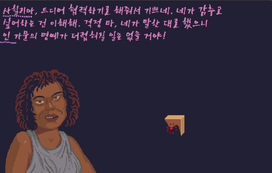 자얀의 대사를 통해 여자의 이름이 사힐리아인 것을 알 수 있다.