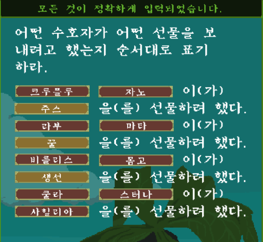우선 어떤 수호자가 어떤 선물을 보냈는지 부터 알아내 보겠다.
